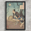 "Moonlight Patrol" is a spectacular print created by the renowned Japanese artist, Yoshitoshi. It is an ethereal and captivating piece that showcases the enigmatic beauty of the night. The print depicts a samurai, who is on a nocturnal vigil, their shadows cast upon the moonlit terrain. Their faces are obscured, lending an air of mystery to the scene. The samurai are depicted as vigilant protectors, their sharp eyes scanning the surrounding for any potential danger. The use of light and shadow in the print creates a sense of unease and foreboding, as if something sinister lurks just beyond the frame. The intricate details and the use of striking colors in the print make it a masterpiece of art.